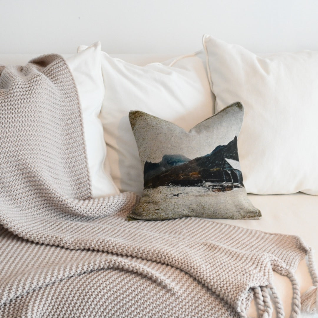 The Hut cushions are images that depict Cradle Mountain in Tasmania and its incredible raw beauty.